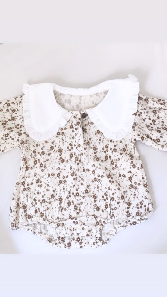 Bloomer bébé fille en coton et lin bleu et son bandeau